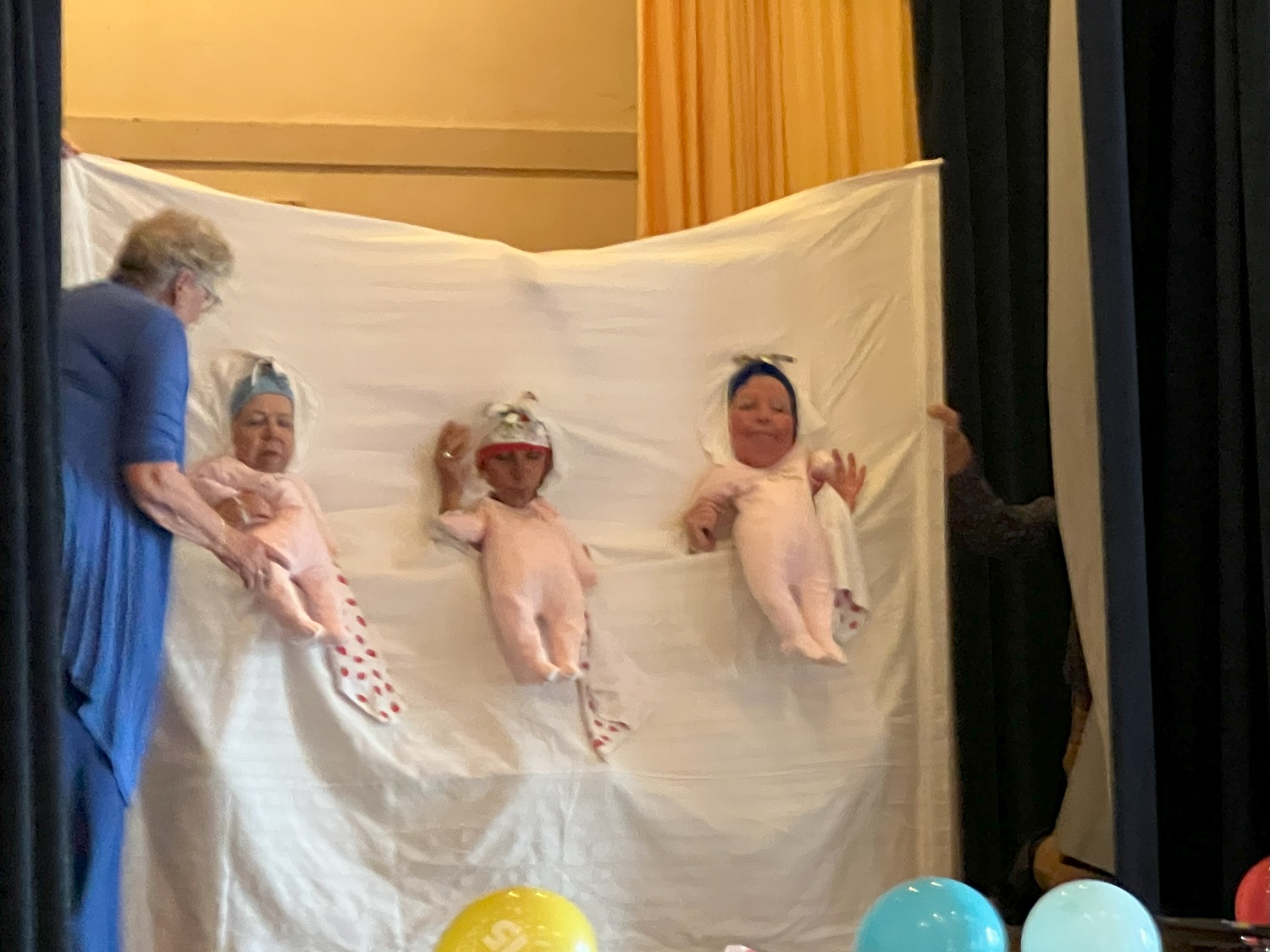 Zo komt Joke als een oude vrijgezelle dame langs ,die in de zaal op zoek gaat naar een leuke vent.